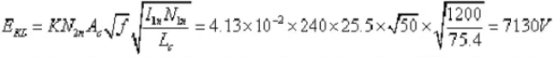 咱們取一次額外安匝I1nN1n=1200A,N2n=240,Ac=25.5cm2,Lc=75.4cm,f=50Hz,鐵芯是冷軋硅鋼片,卷鐵芯,K=4.13×10-2,所以二次開路峰值電壓等于