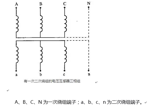 電壓互感器端子標(biāo)明大寫字母A、B、C和N標(biāo)明一次繞組端子,而小寫字母a、b、c和n則標(biāo)明相應(yīng)的二次繞組端子。