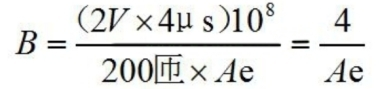 現(xiàn)在咱們來看磁芯,假定二極管是一般的一般的二極管,通態(tài)電壓大約為1V,電流為10A/200=50mA。互感器輸出電壓為1V,加上二極管的通態(tài)電壓1V,總電壓大約2V。250kHz頻率作業(yè)時,磁芯上的磁感應(yīng)強(qiáng)度不會跨越